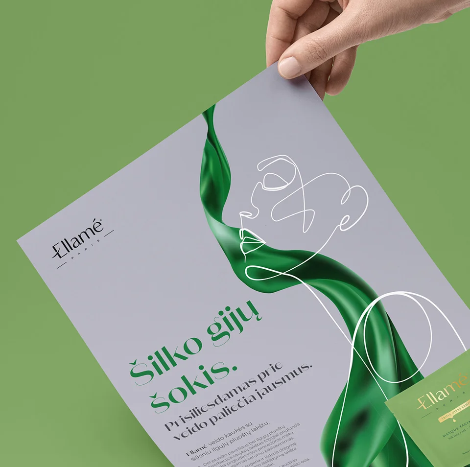 Veido kaukių rinkoje gausu, bet Corpus Medica išsiskiria plonu, lengvu ir skaidriu lakštu – tai jos konkurencinis pranašumas. Mūsų užduotis – sukurti reklaminę koncepciją ir vizualus, pabrėžiančius šį išskirtinumą. Dėmesį sutelkėme į lakšto plonumą ir pasitelkėme šilko gijos metaforą – ji siejasi su moteriškumu, švelnumu ir subtilumu. Grafiniuose sprendimuose gijų ir linijų motyvai perteikia odos išlyginimo ir patempimo efektą. Šūkis „Šilko gijų šokis. Prisiliesdamas prie veido paliečia jausmus.“ apibendrina produkto esmę – lengvą, švelnų ir veiksmingą prisilietimą.