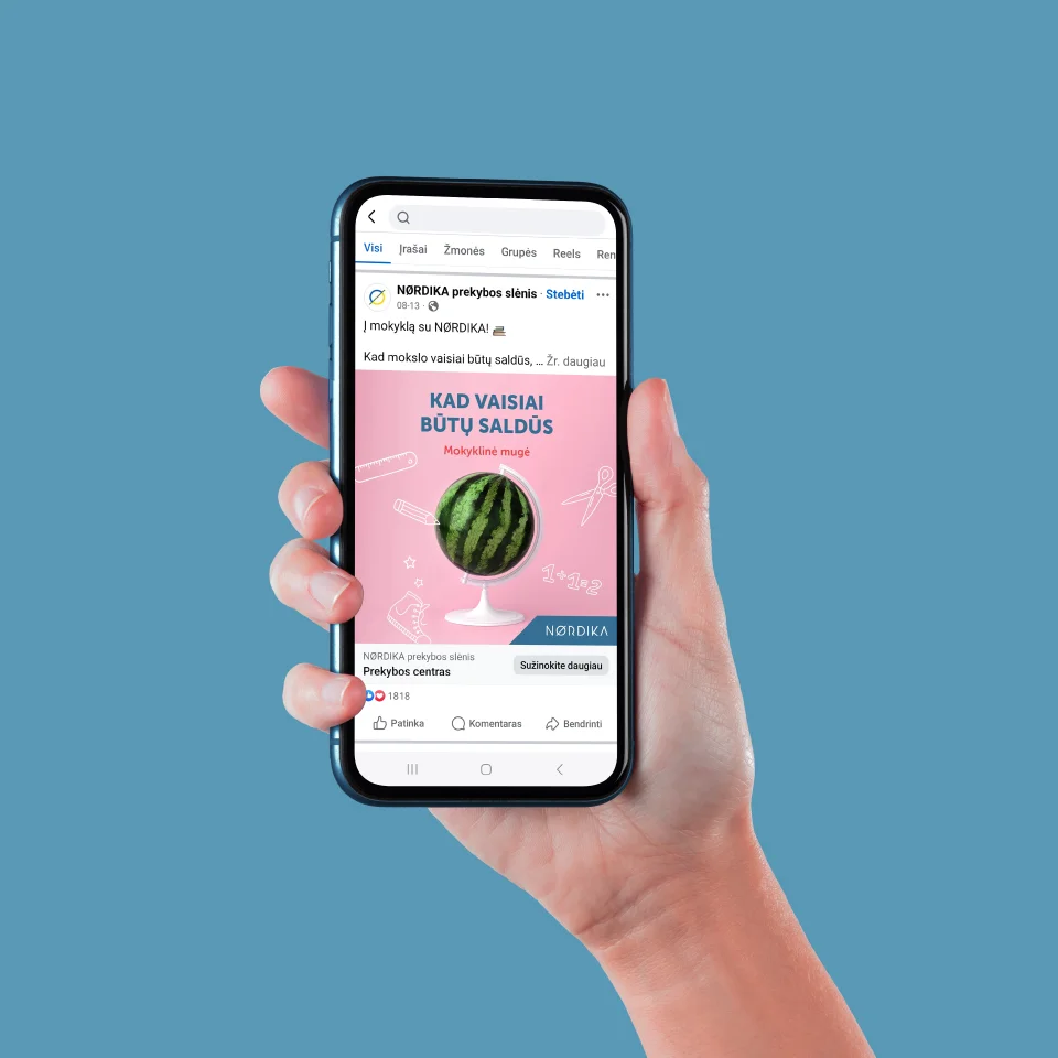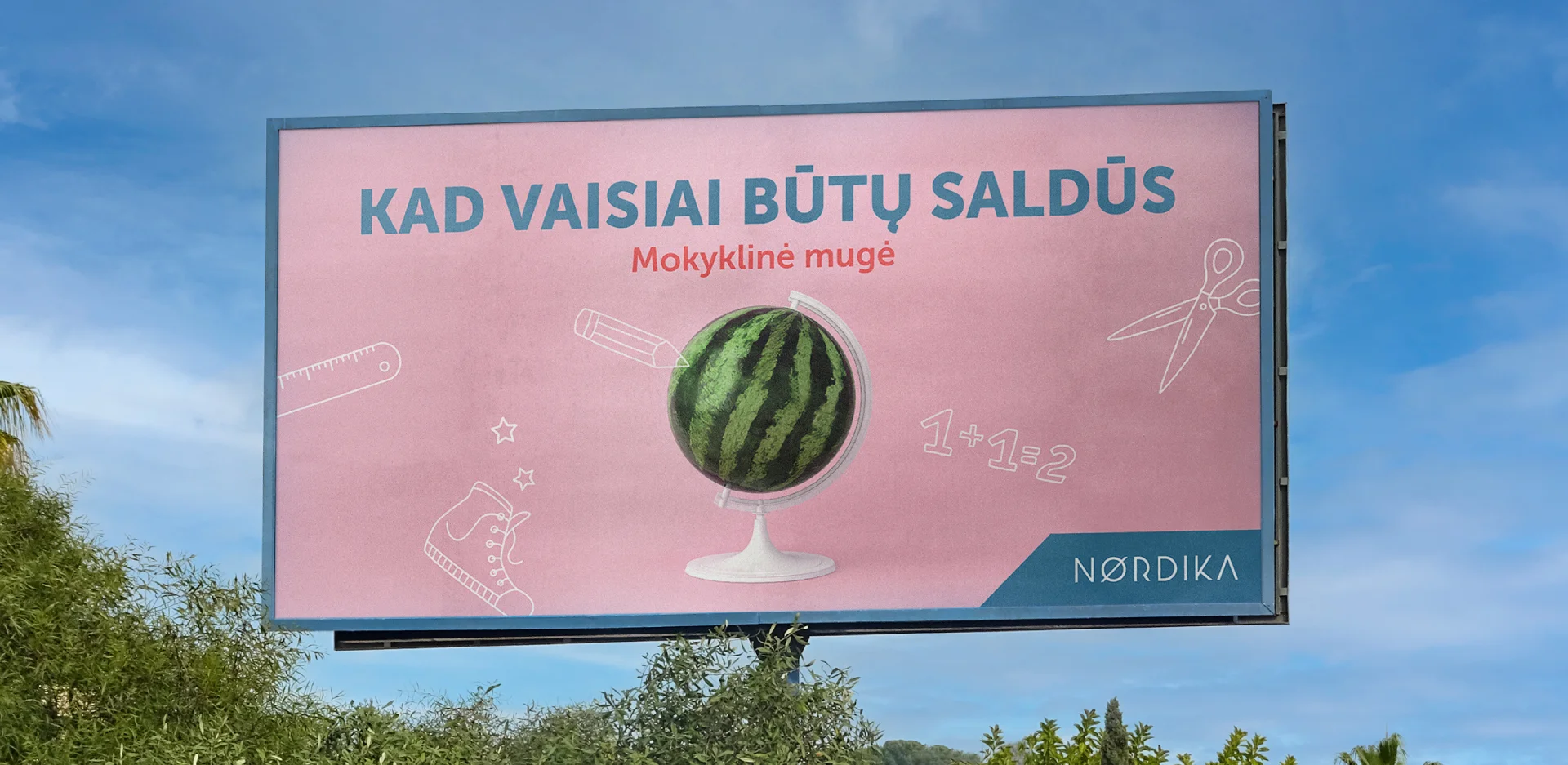 Iššūkis – artėjančiam rugsėjui suteikti lengvumo, smagumo ir džiaugsmo įspūdį bei parodyti, kad mokymosi procesas ir pasiruošimas jam gali būti labai malonus. Žinoma patarlė byloja – „Mokslo šaknys karčios, o vaisiai – saldūs“. Tam, kad tie vaisiai būtų saldūs, reikia lengvo ir smagaus pasiruošimo – o būtent tokį ir galima patirti Nordikoje. Kai arbūzas atstoja gaublį, visiems aišku – pirmiausia reikia saldžių (gerų, kokybiškų, gražių) mokslo priemonių. Vizualas papildytas grafika, kuri transliuoja mokyklinės mugės mintį.