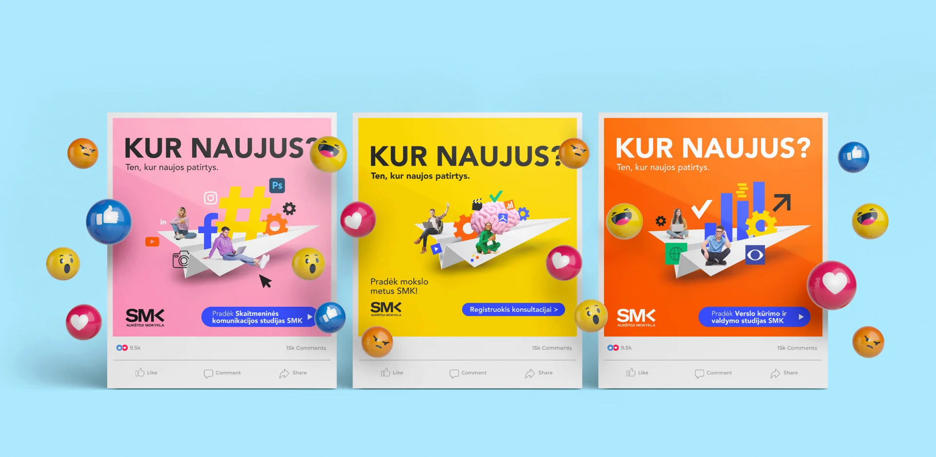 Z karta – nerūpestingi, pašėlę, gyvenimo džiaugsmą vertinantys jaunuoliai, tad mūsų sprendimas – kalbėti Z kartos kalba ir į studijas pažiūrėti linksmai, su humoru bei užduodant legendinį klausimą, kurį žino visi. Naujos patirtys gali būti susijusios ir su skrydžiu – į gyvenimą, į tolius, į gyvenimo nuotykį, tad pagrindiniu simboliu pasirinkome popierinį lėktuvėlį, kuris palydės būsimus studentus su visais naudingais atributais į studijų metus. Tai kur naujus, m?